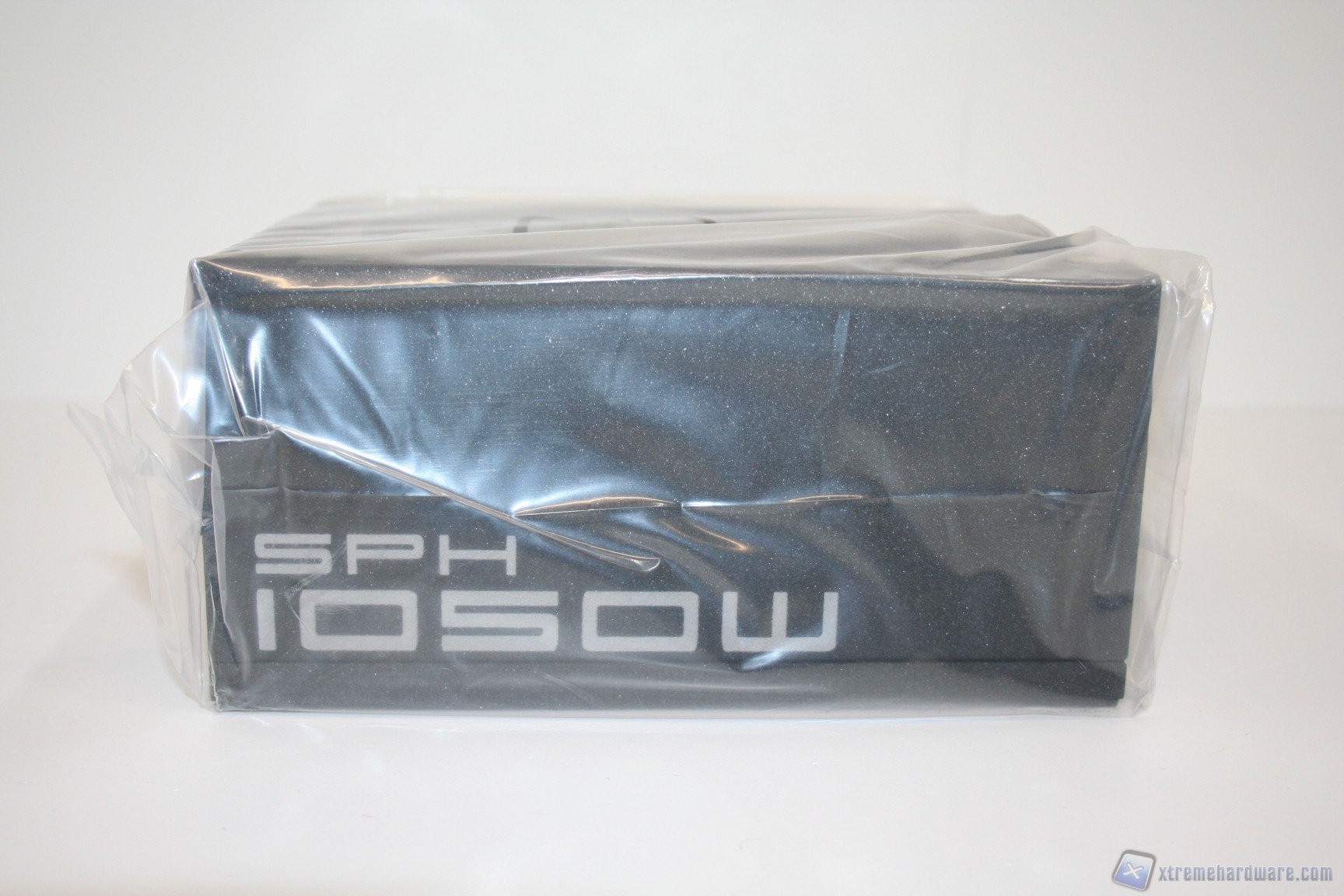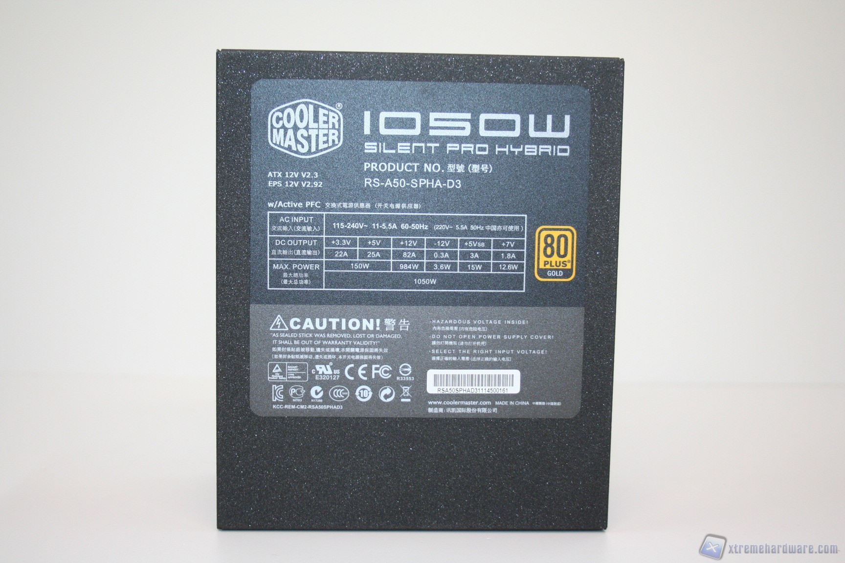 Su entrambi i lati è presenta una scritta "SPH 1050W" che sta ad identificare "Silent Pro Hybrid" ed il wattaggio dell'alimentatore. Nella parte posteriore vi è la presa IEC per la corrente, il pulsante di accensione dell'unità ed una grande griglia a nido d'ape per l'aereazione dei componenti interni. Come è stato precedentemente detto, è presente anche un particolare fan controller, ma lo analizzeremo in dettaglio nei prossimi capitoli.